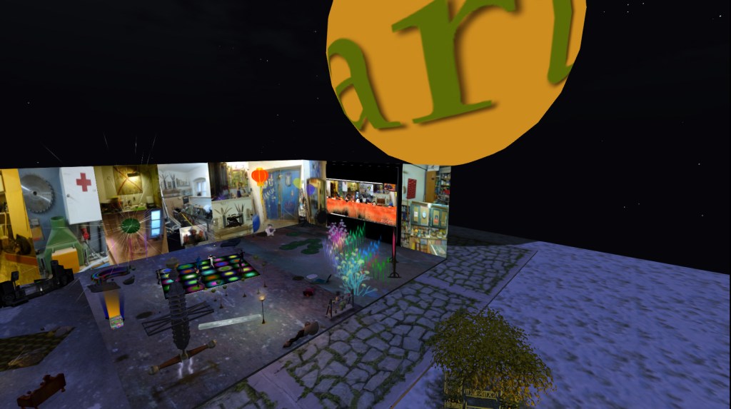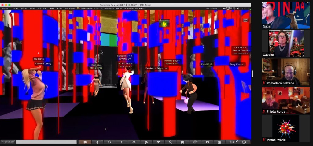 This years Art´s Birthday “OPERA BILITY” was entirely virtual performed and realized. Location for the event was our parcel at Odyssey in Second Life. A meeting room on Zoom offered another access to the party.