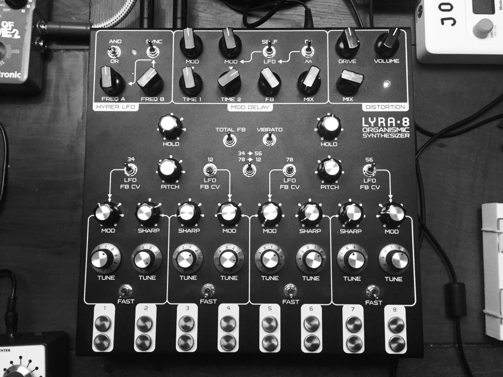 SOMA´s powerful and dark sounding Lyra-8 is still the mothership in my noisy chamber orchestra, but gets competitive partners by JMT´s two unique noise-synths named LD-1 and TVCO-2a. Both produces wonderful harsh and if needed vibrant glassy shockwaves of sound.