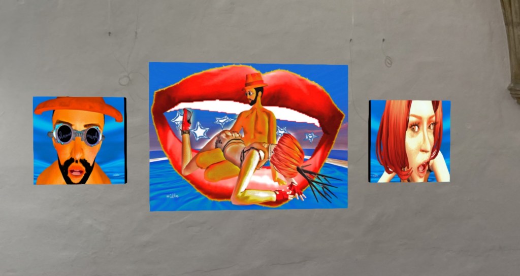 This Monday i was invited to the fresh and colorful exhibition of Frieda Korda and Max D. Well at Odyssey inside SecondLife. The artists built a virtual version of Regensburg´s Sigismundkapelle and exhibited their impressing artworks and collages there.