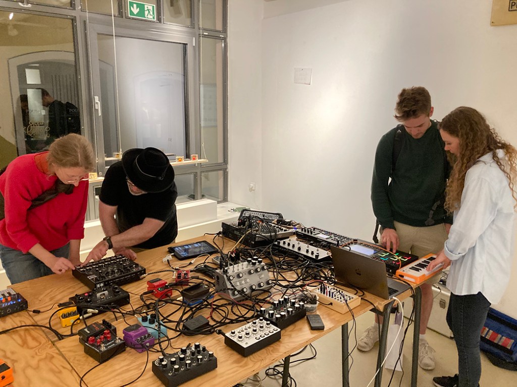 With the help of a not insignificant number of experimental synthesizers, samplers, effects, tape loopers and unusual, rare instruments, the audience together with the artists created a sound space that developed from atonal chaos to both relaxing and partly rhythmic sound surfaces.