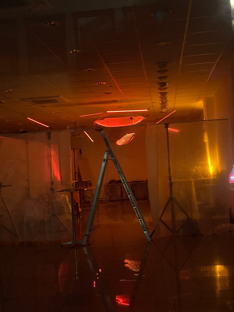 Der Raum lädt zur aktiven Teilnahme ein und fordert den Betrachter auf, die Grenzen zwischen Beobachter und Teilnehmendem zu hinterfragen.