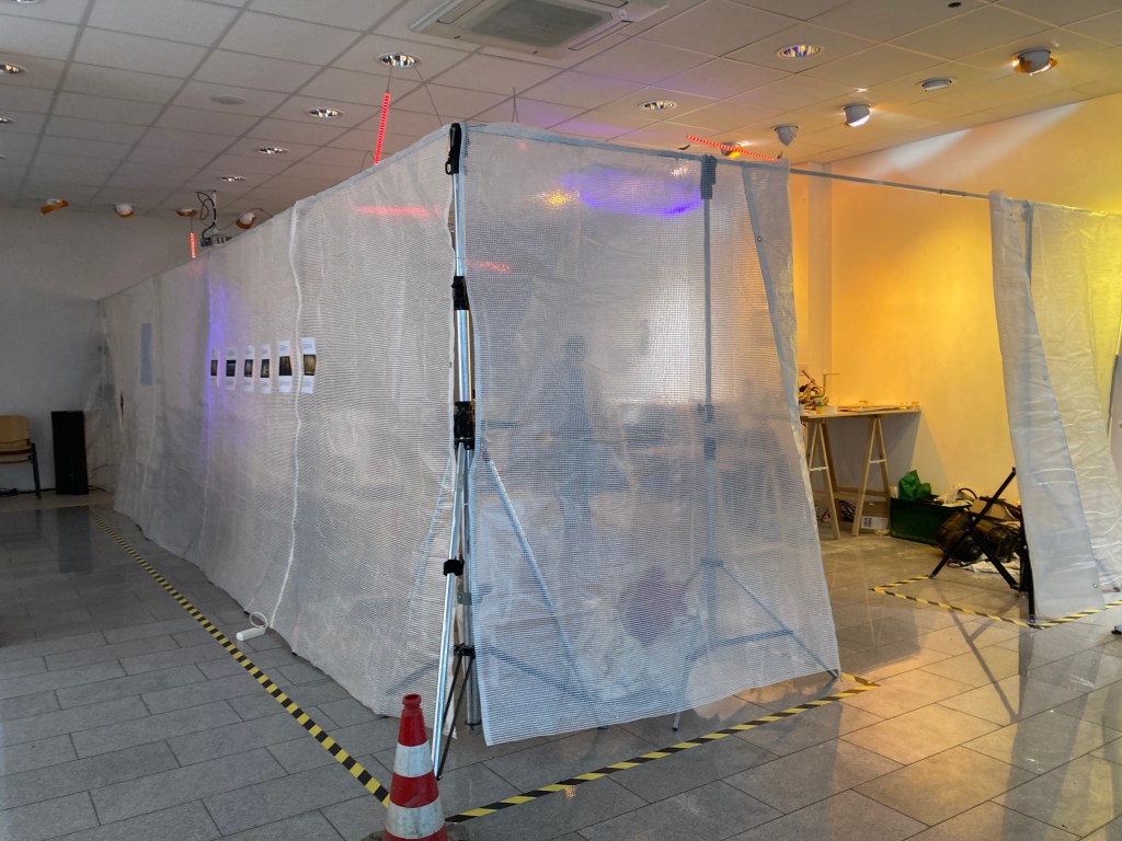 Diese “begehbare Petrischale” dient als paradigmatischer Raum, der die Dynamik und Fragilität kĂĽnstlerischer Prozesse verkörpert.