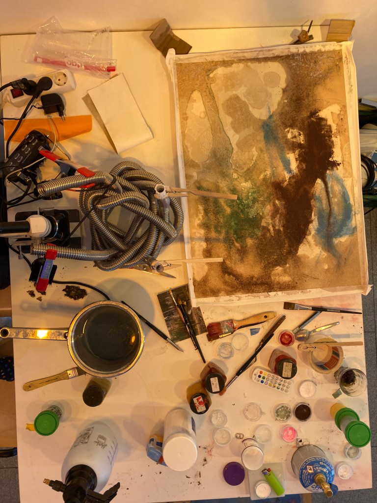 Es ist ein Raum, in dem der kreative Prozess unter ständiger Beobachtung und Reflexion steht, vergleichbar mit dem Leben unter einem Mikroskop.